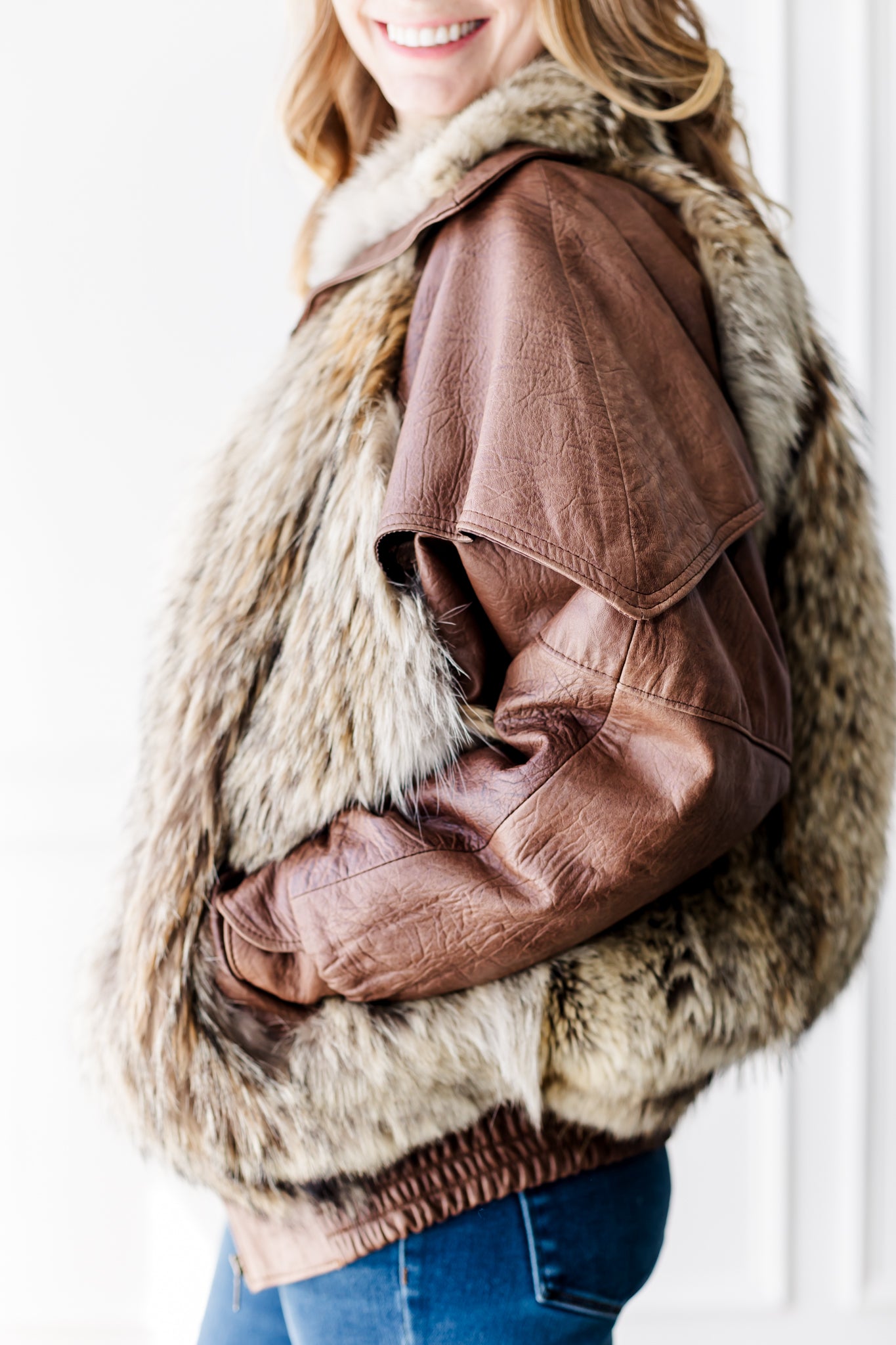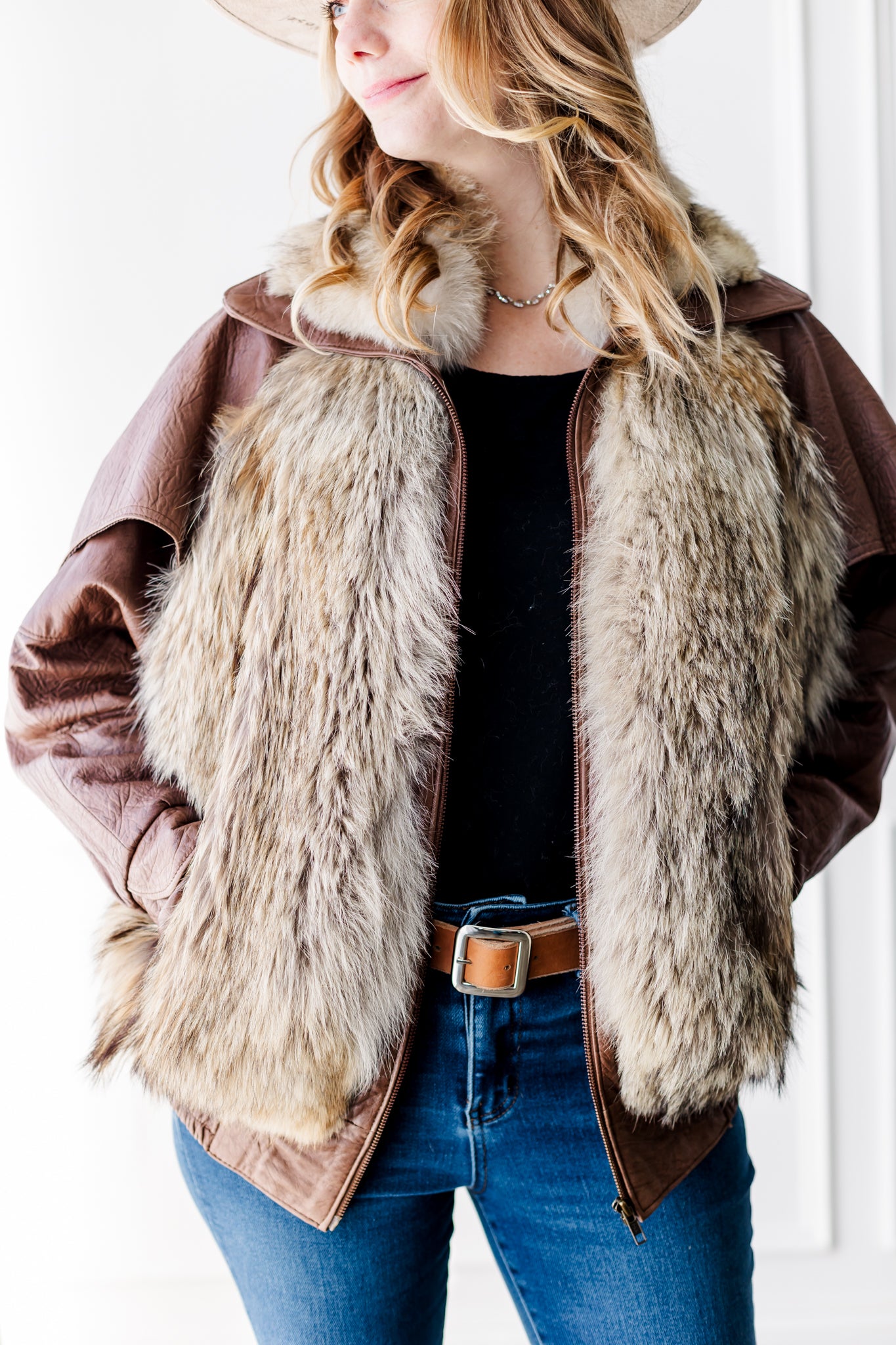 Sz L/XL Reversible Genuine Leather, Mink + Fox Trim Coat
