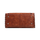 The Concealed Carry Ann Satchel is crafted with soft, faux leather, adorned with laced sides and a stylish tassel.