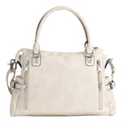 The spacious interior is divided into two parts by a full-length zippered pocket. The front compartment features two open slip pockets, the back compartment has a zippered pocket, a large open pocket for your cell phone or other daily necessities and a leather keys strap for immediate access to keys. The adjustable crossbody strap easily clip on and off and measures 28”- 49” by 1” (drop 12” - 24”). The double handles measure 18” long with a 6.5” drop. The purse features silver-tone hardware throughout and 4 bottom studs for stability.