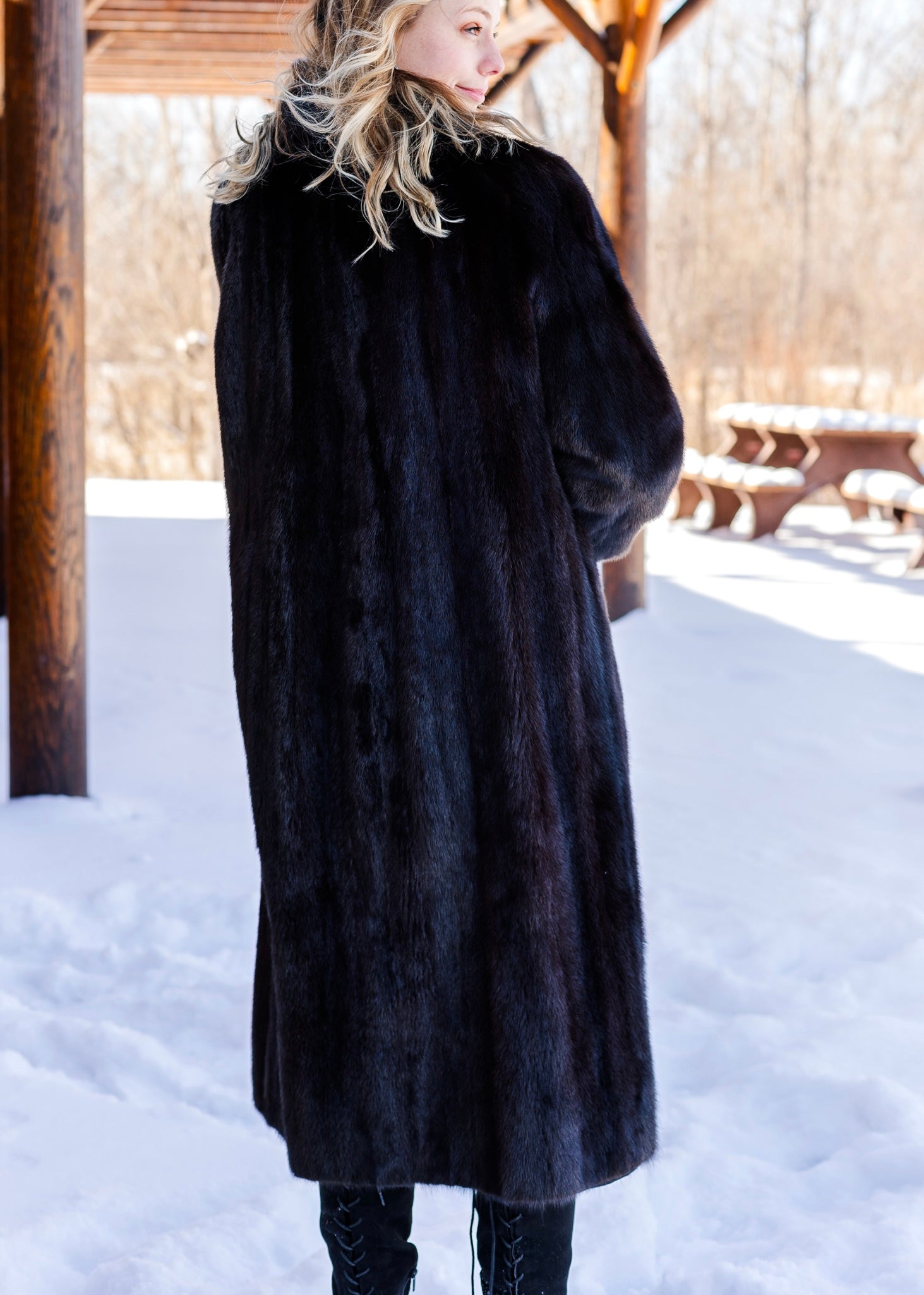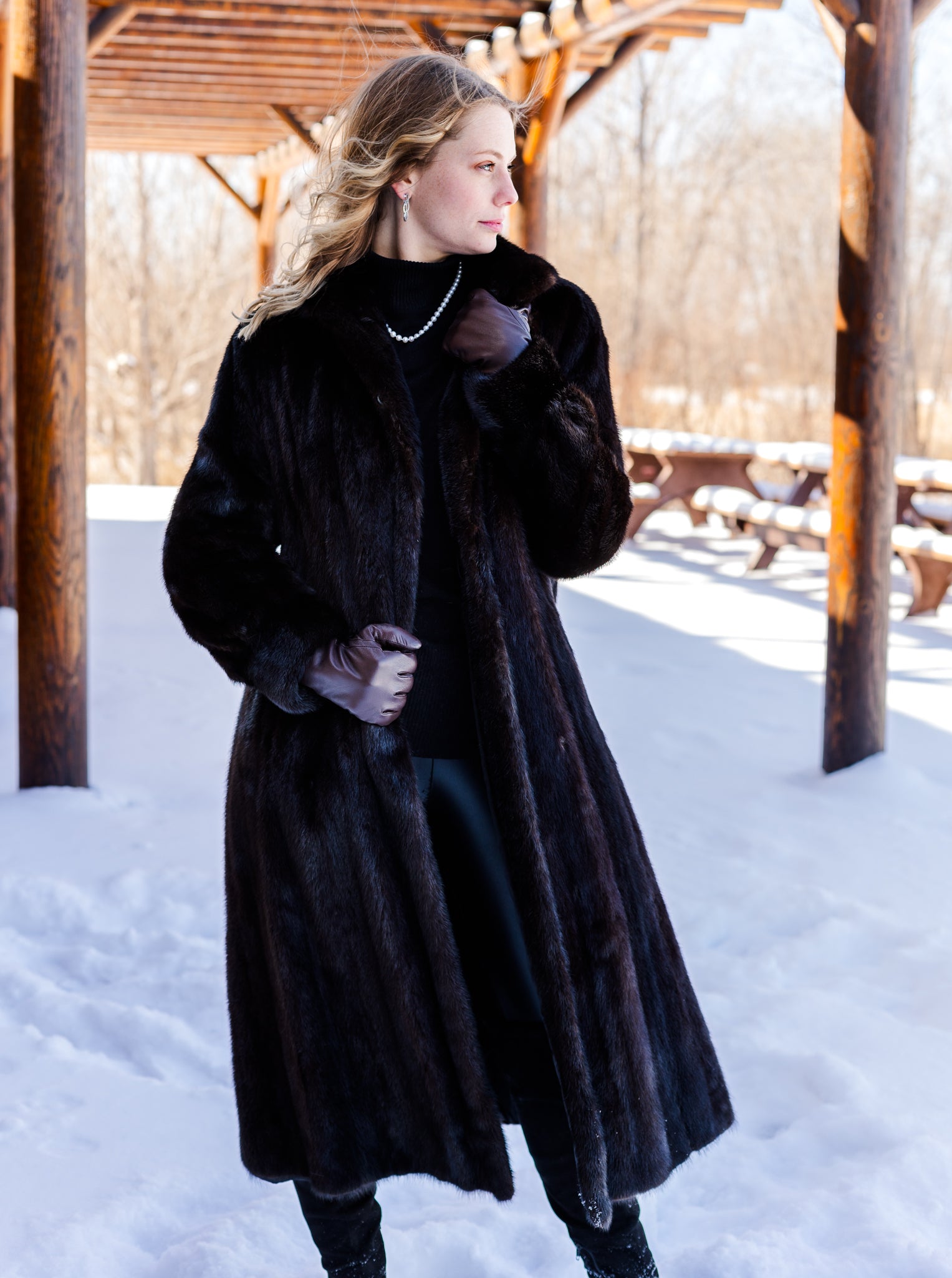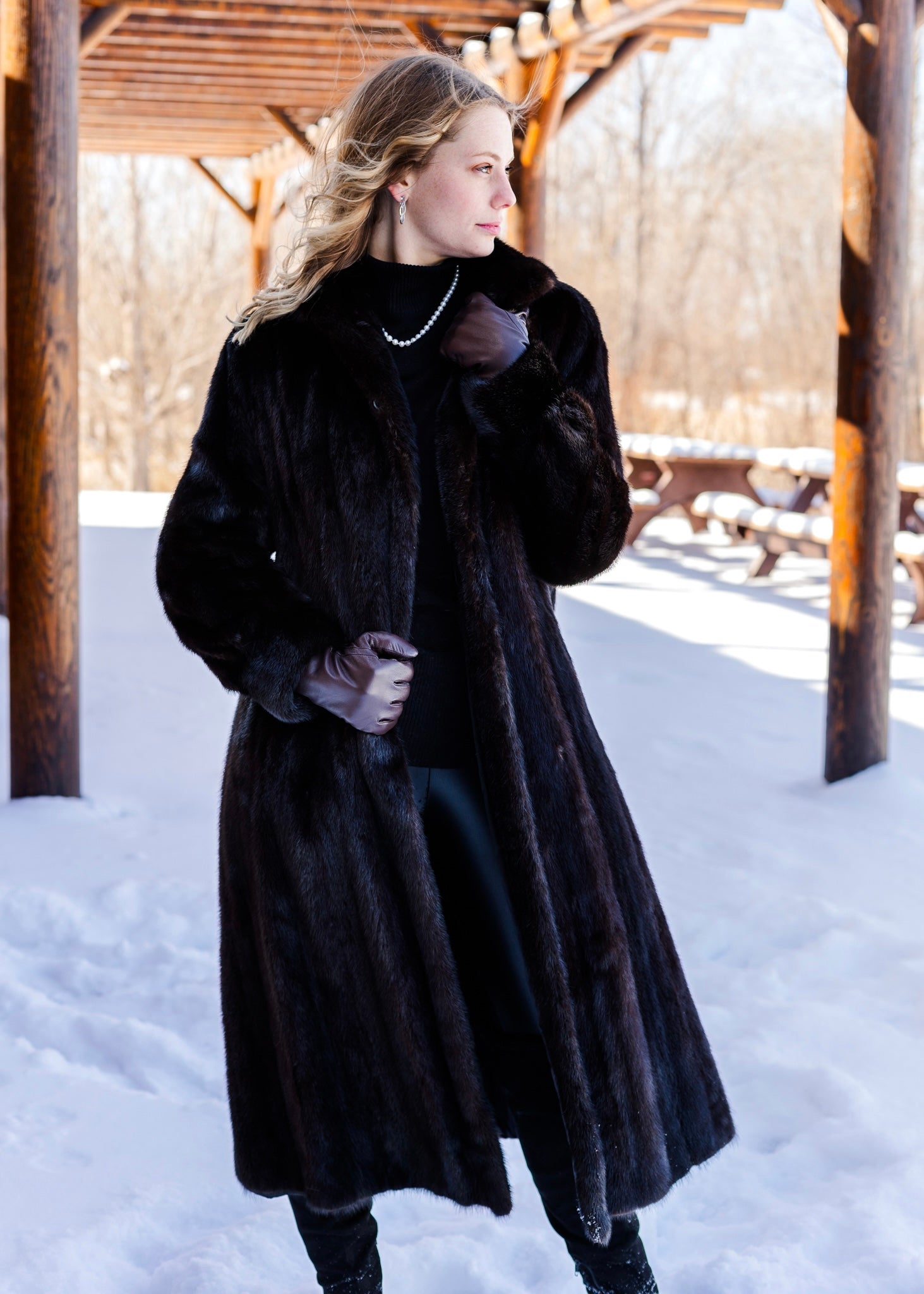 Indulge in timeless luxury with this exquisite full-length Blackglama mink coat. Crafted from the finest, ultra-soft mink pelts, this coat showcases a deep, lustrous black hue that epitomizes sophistication. Designed for both elegance and warmth, it features a sleek silhouette with two discreet front pockets, sumptuous silk lining for ultimate comfort, and a secure hook-and-eye closures for a seamless finish. Perfect for elevating any ensemble, this Blackglama mink coat is a statement of unparalleled refinement and style.