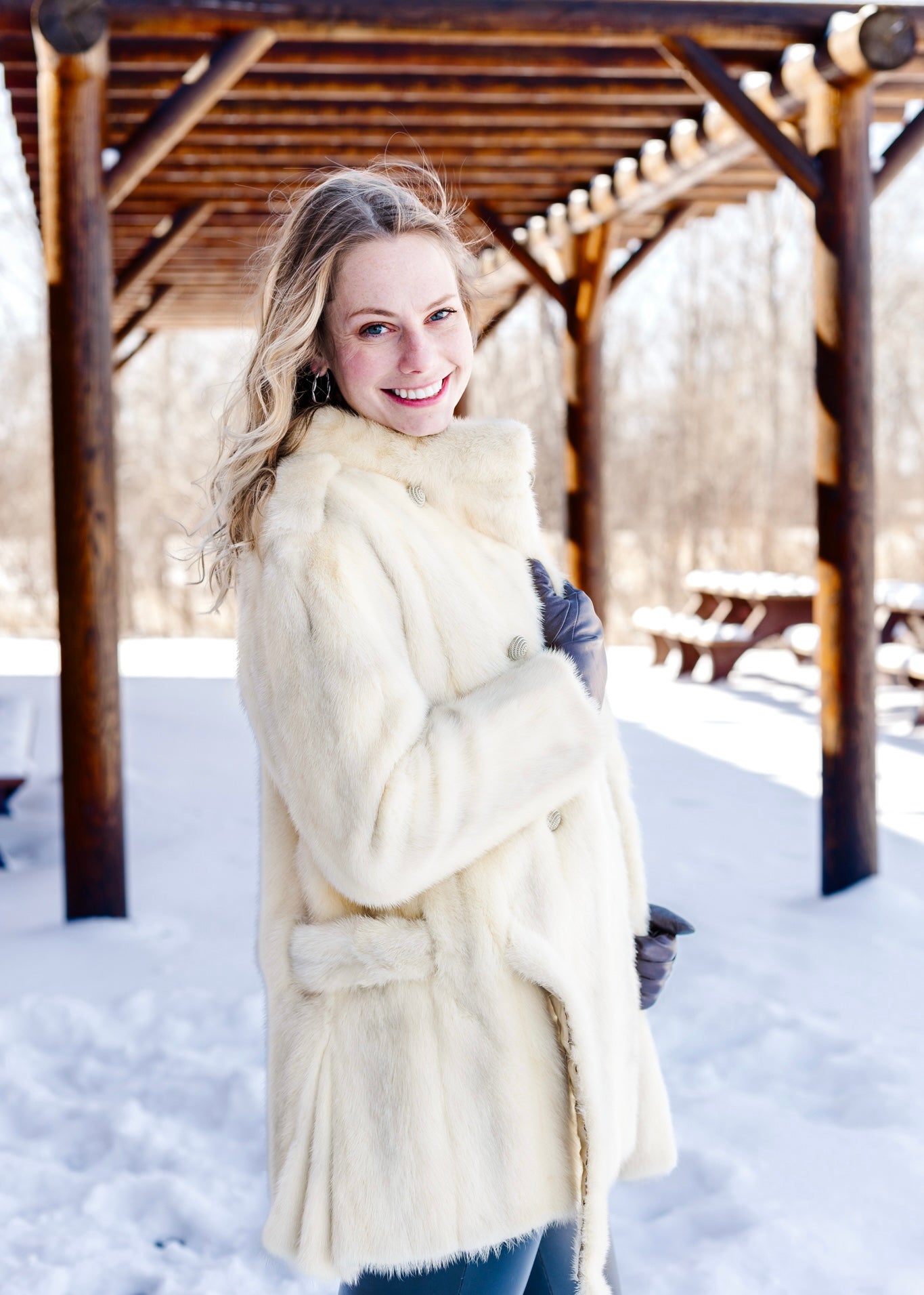 Step into vintage elegance with this stunning 1960s pearl cross mink coat. Showcasing a rare and luxurious pearl-hued mink with a distinctive cross pattern, this coat exudes timeless sophistication. The tailored silhouette is accentuated by a cinching waist belt, offering a flattering, feminine fit. Exquisite buttons adorn the exterior, adding a refined touch of glamour. Designed for both warmth and style, this coat is a statement piece that captures the effortless chic of the 60s while remaining a classic for modern wardrobes.