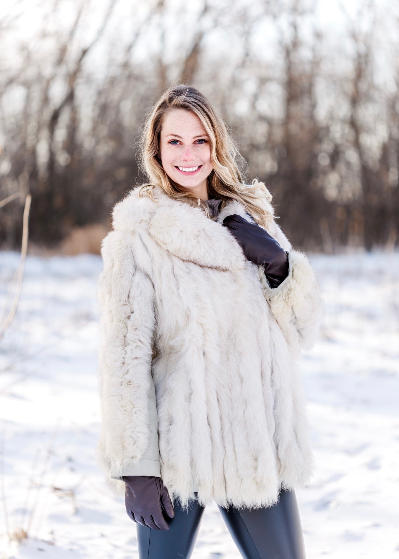 This stunning Saga fox fur coat is a showstopper, designed for those who love to make a bold statement. The coat features lush, voluminous fox fur in a pristine white hue that exudes glamour and confidence. Its dramatic silhouette and plush texture give it a big personality, effortlessly commanding attention. Ideal for making a striking impression at any occasion, this coat combines luxurious warmth with an unforgettable sense of style, embodying the ultimate in high-fashion elegance. This luxurious jacket features hook-and-eye closures and a removable waist belt.