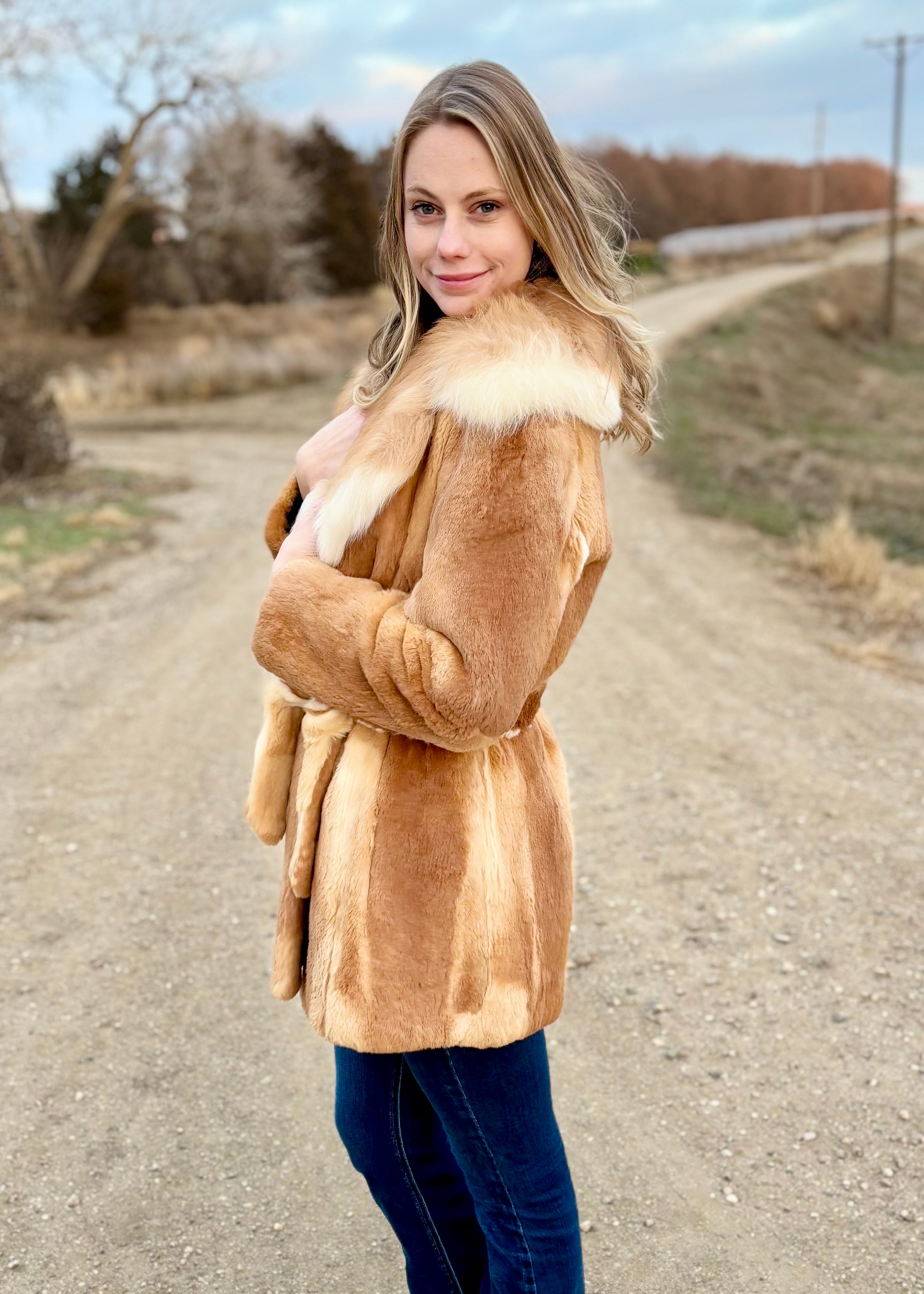 Finished with a coordinating belt, the jacket cinches effortlessly at the waist, offering a customizable fit that flatters every figure. Whether worn loose for relaxed sophistication or tied for an hourglass effect, this sheared red fox jacket delivers undeniable luxury—crafted to captivate from first glance to final impression.
