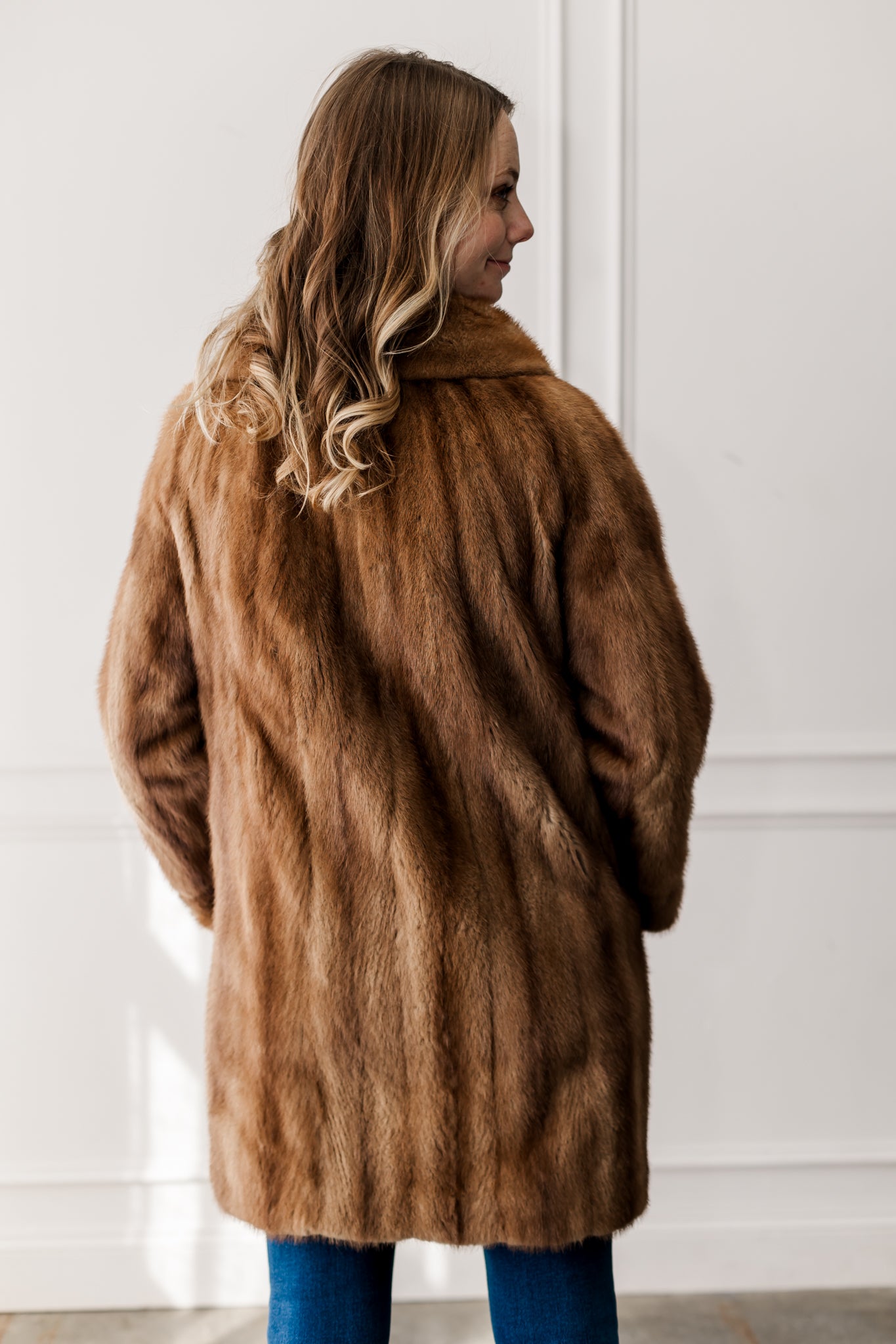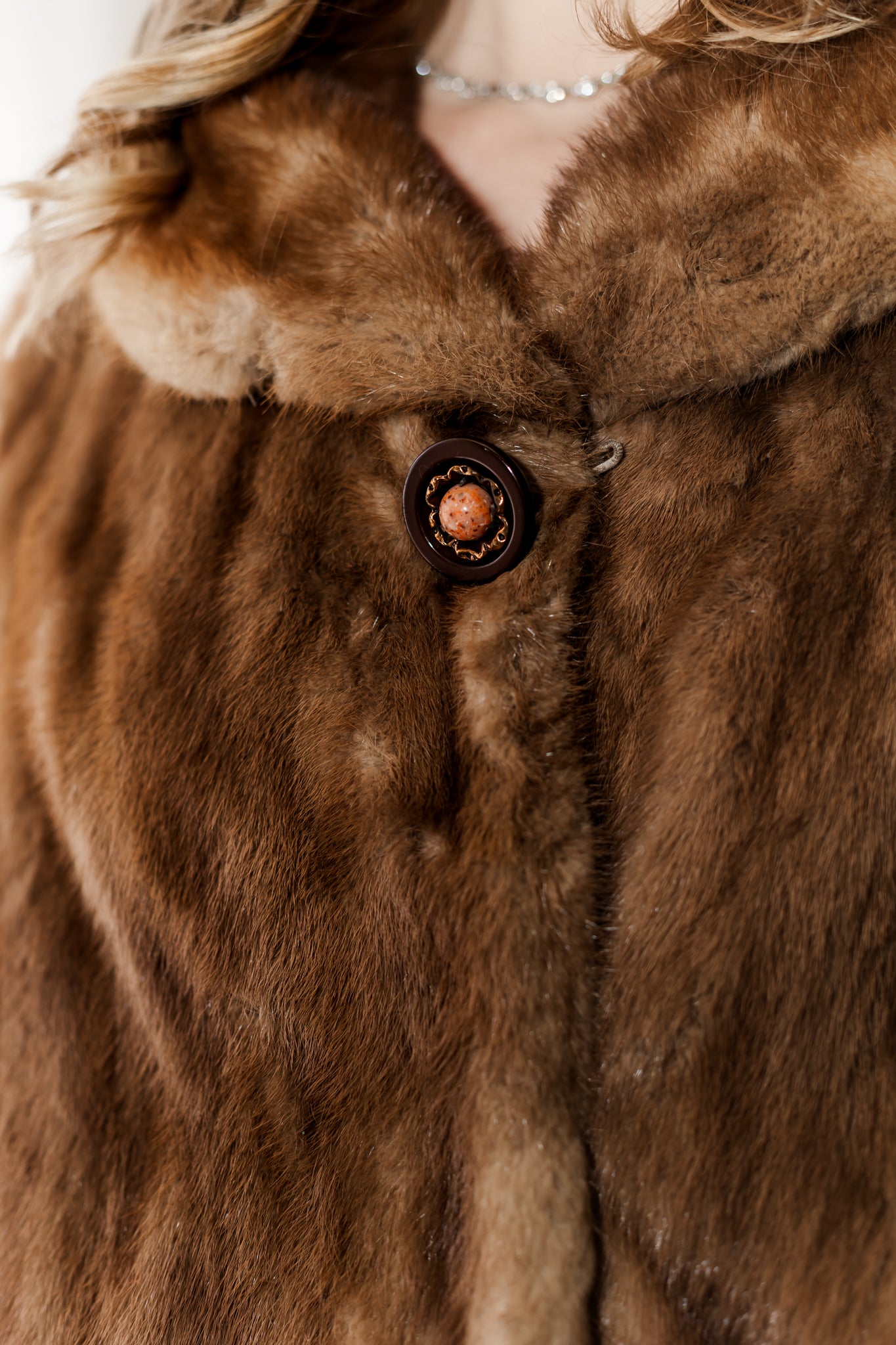 Soft, elegant, and timeless, this pastel mink stroller is a beautiful everyday luxury. The coat features silky pastel mink pelts with natural warm tones that create a rich, luminous look. Designed in a classic stroller length, it offers a relaxed, flattering fit with cozy warmth. The plush mink collar frames the neckline perfectly, while the decorative button closure adds a touch of vintage charm. A sophisticated piece that feels both effortless and refined—perfect for elevating any winter wardrobe.