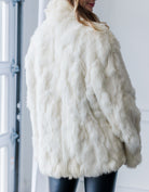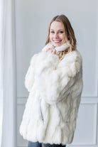 This ultra-soft rabbit fur jacket combines cozy warmth with modern edge. Its creamy, plush texture gives it a luxe, cloud-like feel, while the cool exposed zippers add a bold, contemporary twist that sets it apart from classic fur designs. The relaxed silhouette and supple fur make it incredibly comfortable to wear, perfect for staying stylish on crisp winter days.