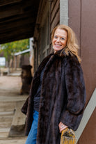 - Luxurious Mink Fur: Crafted from the finest quality mink, the coat boasts a plush texture and a sleek, glossy finish that highlights its rich mahogany color.