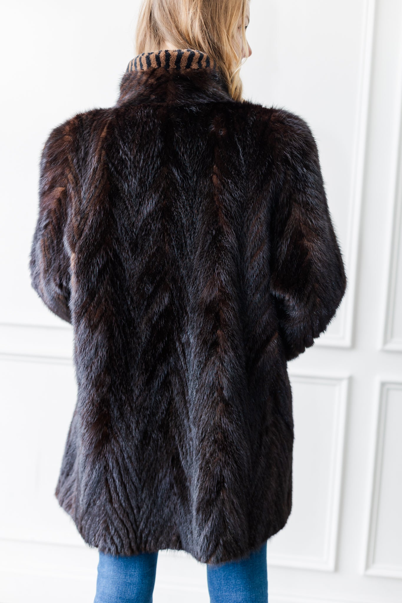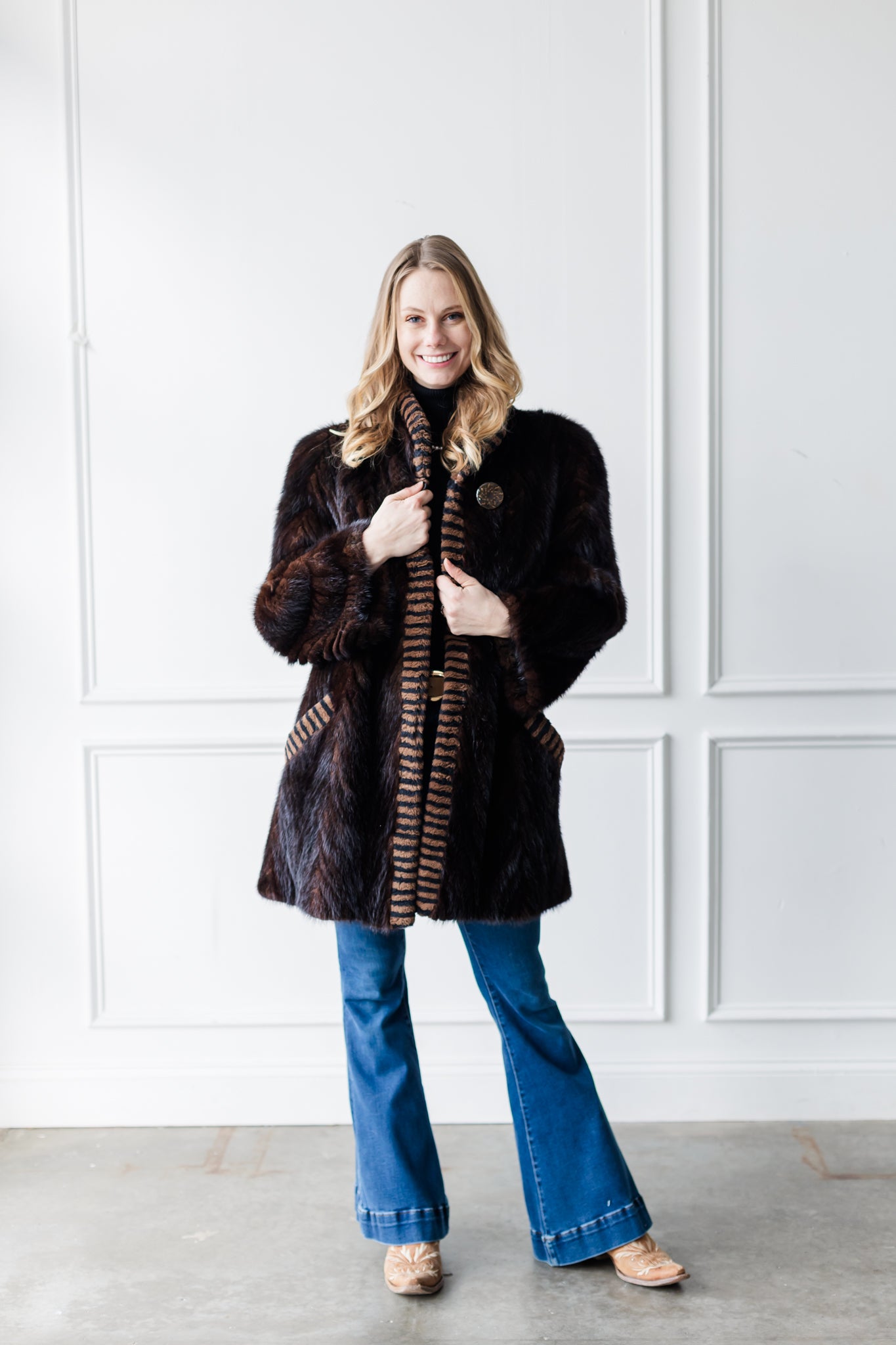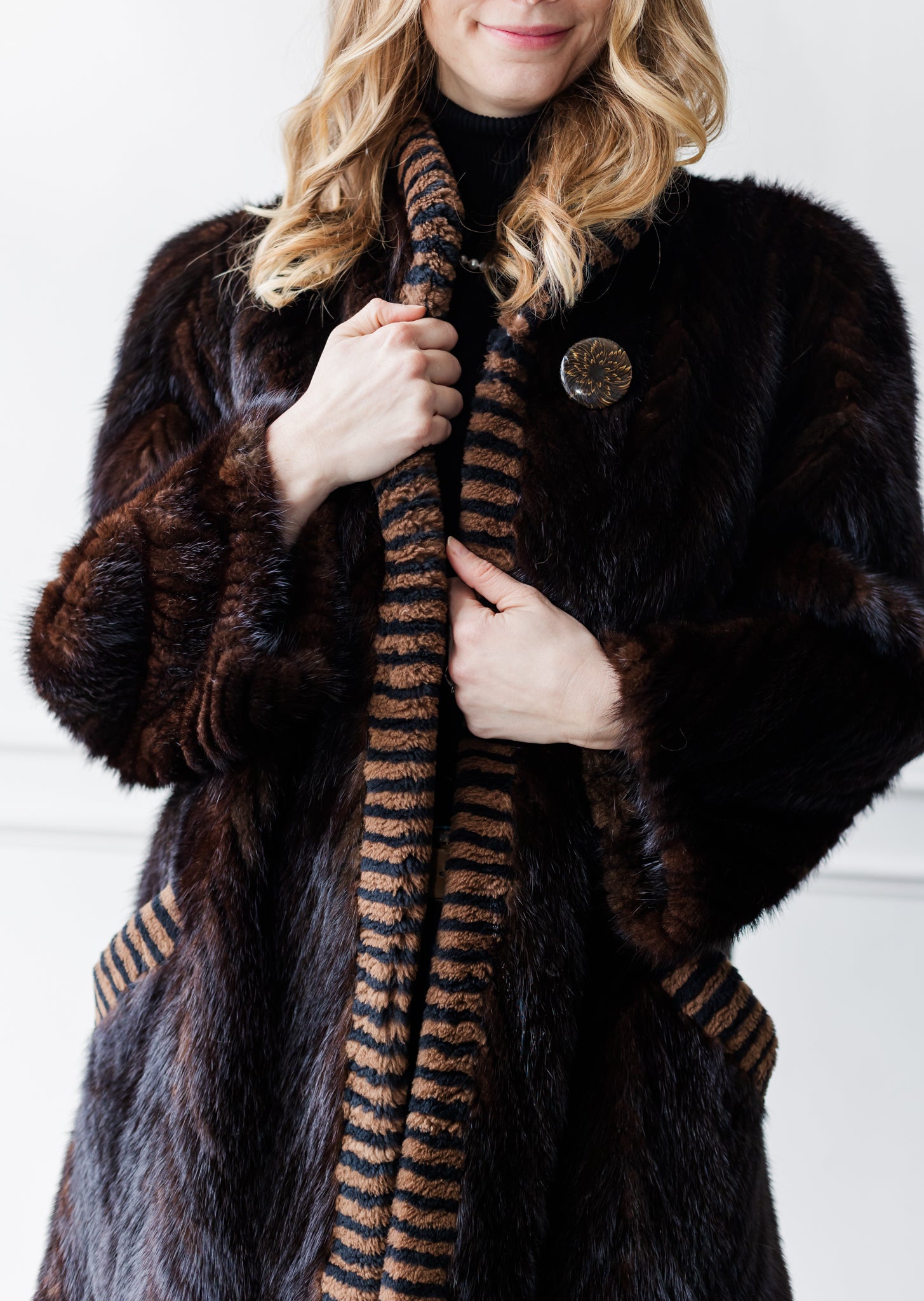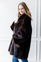 This mink coat with sheared beaver trim is a beautifully refined statement piece, blending rich, glossy mink with striking textured trim for added depth and contrast. Designed with a clean, flattering silhouette, it offers exceptional warmth and timeless elegance with a distinctive, elevated finish.
