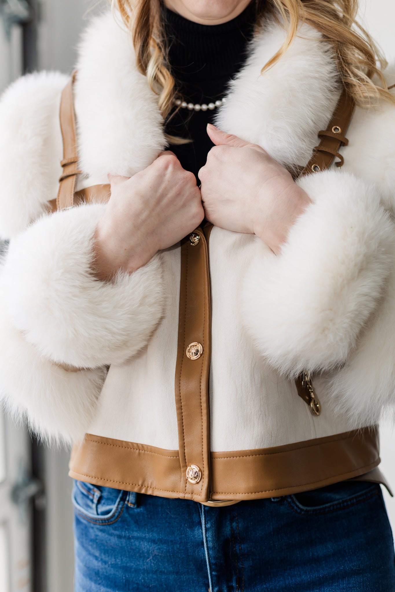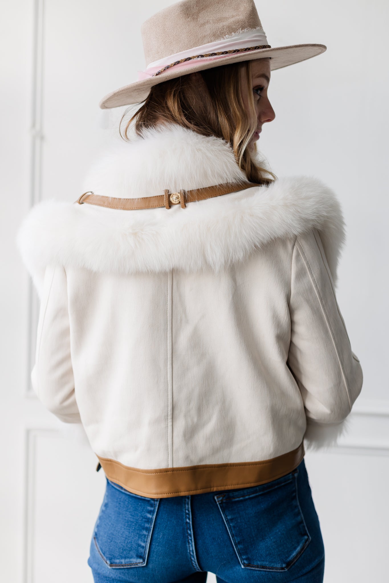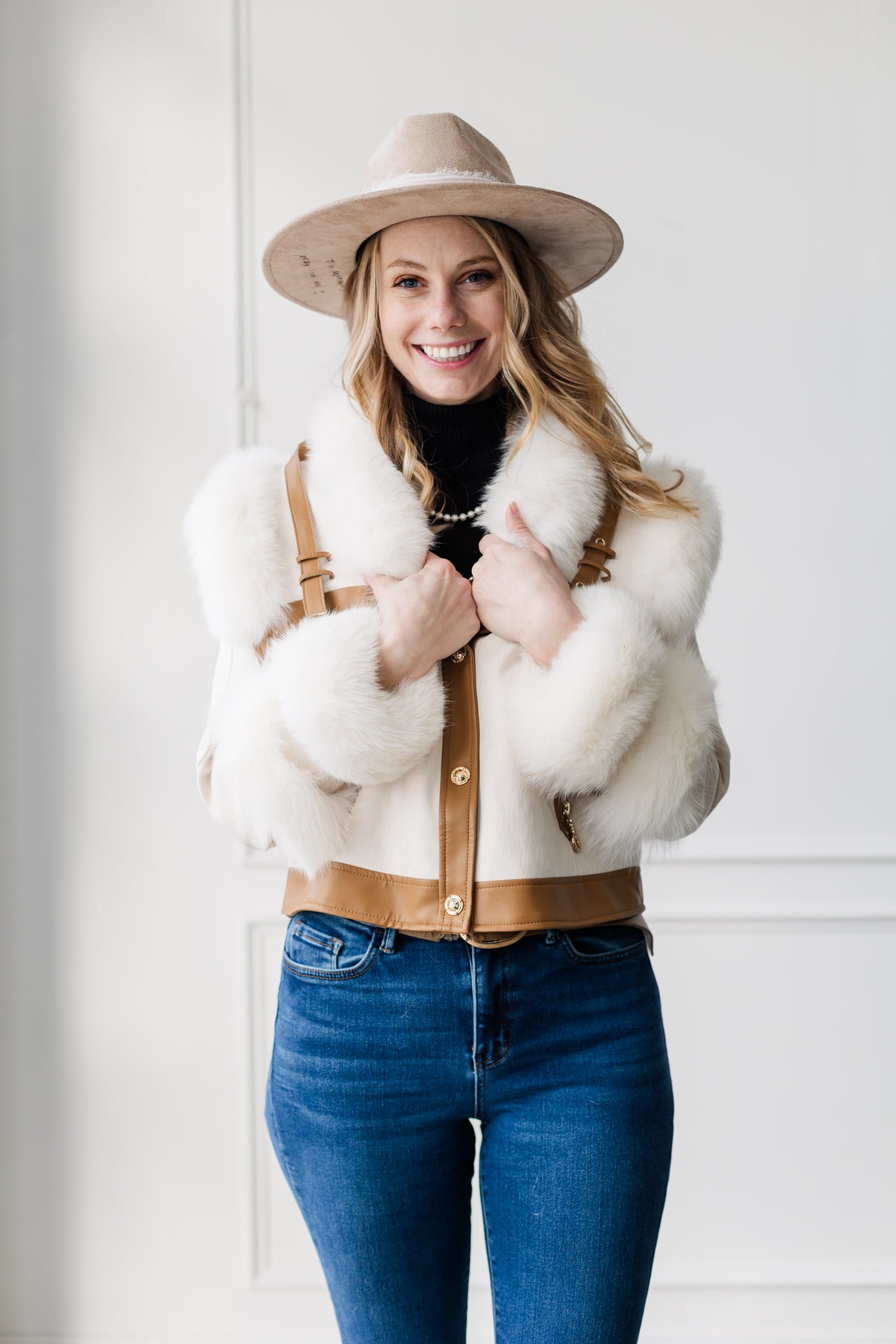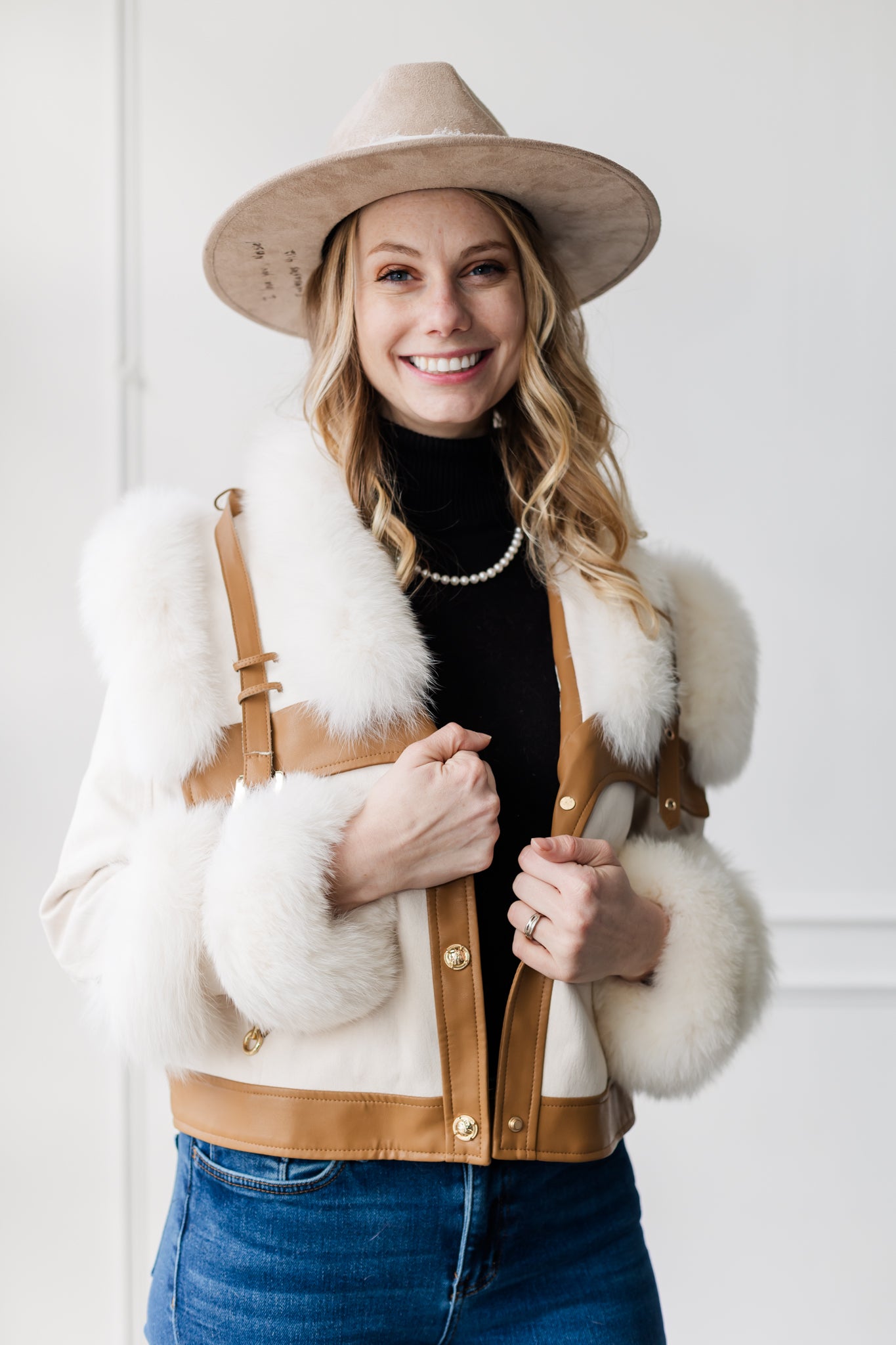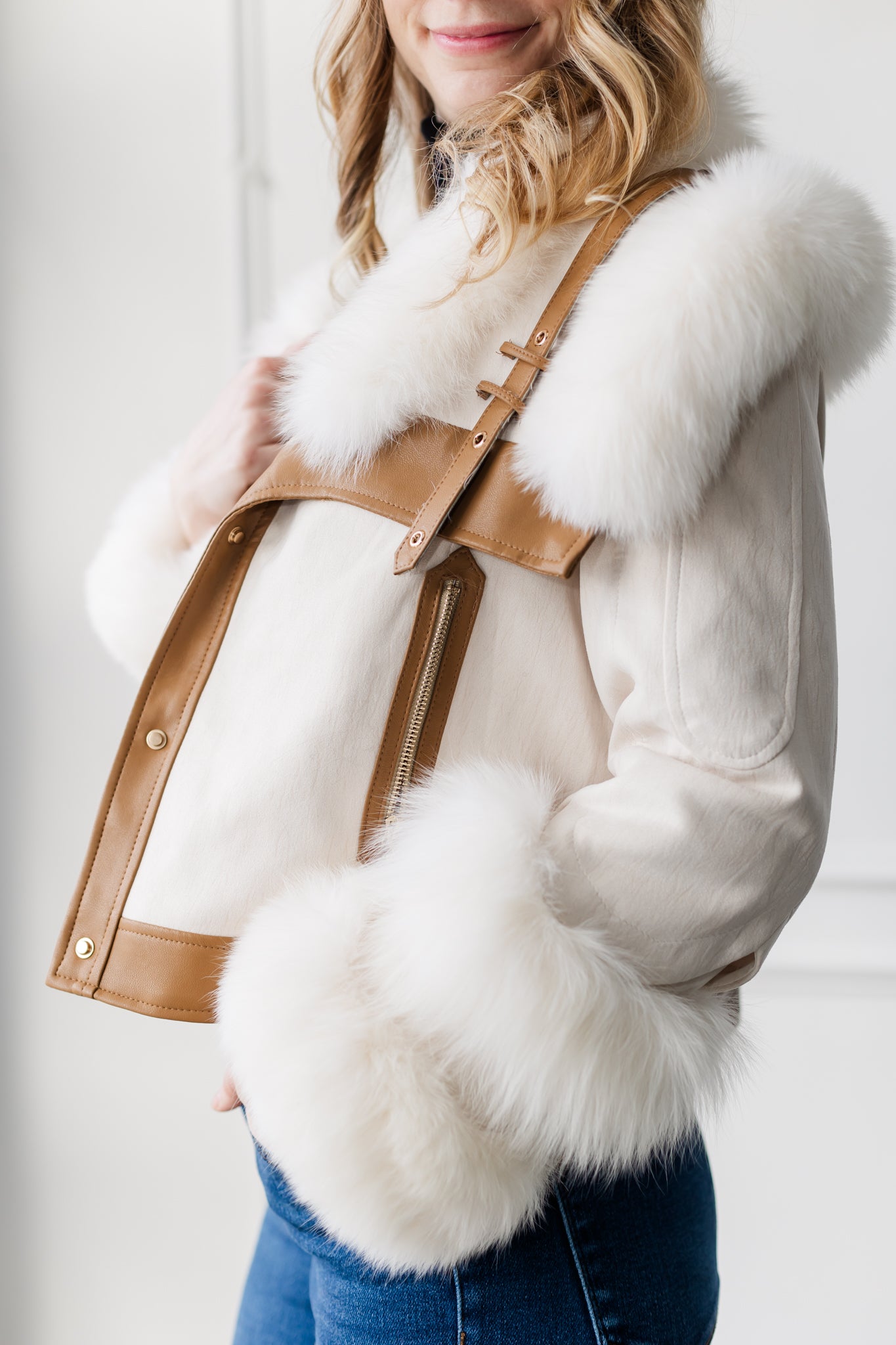 This genuine fox trim jacket blends luxe texture with a modern, western-inspired edge, featuring plush fox fur at the collar and cuffs paired with rich leather accents. Polished yet playful, it’s a standout statement piece that effortlessly elevates denim or dresses with timeless charm.