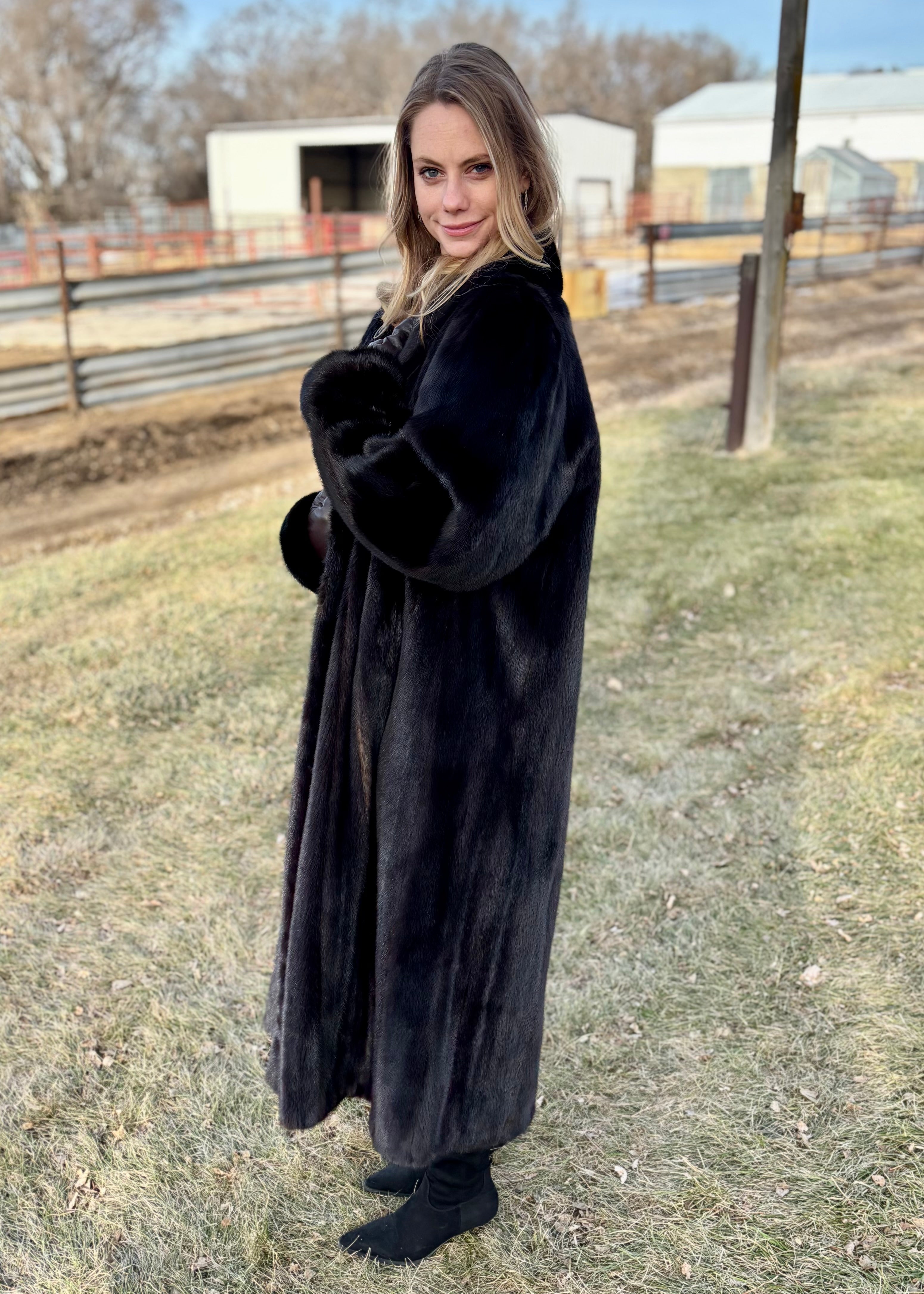 A true icon of luxury, this Blackglama mink coat is as timeless as it is breathtaking. Crafted from rich, velvety mink with that unmistakable Blackglama depth and sheen, this coat drapes beautifully for an elegant, elongated silhouette. The plush texture feels incredibly soft to the touch while offering exceptional warmth without bulk.